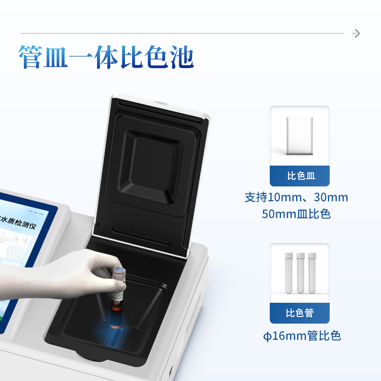 5、支持10mm、30mm、50mm皿比色和φ16mm管比色等比色方式,多元选择,确保测量的准确性;